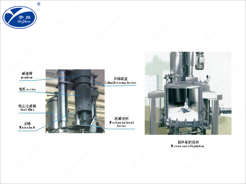 The upper cylinder is composed of a cylinder, a head assembly, a flange, etc. The head assembly includes a head, breathing valve, safety valve, pressure gauge, sight mirror, washing liquid inlet, feed port, compressed air inlet and other inlet nozzle. The transmission parts, lifting parts and washing parts are installed on the upper cylinder.