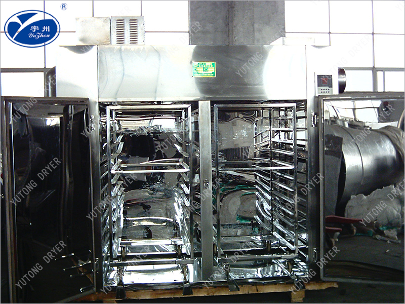 Place the drying tray, bottle, or cart filled with materials into the box, start the PLC programmable control system, and the internal circulation fan will work, heat up, and the butterfly valve will open simultaneously. The drying box will quickly heat up. Under the action of the internal circulation fan, dry and hot air enters the box through a high-temperature resistant filter, and forms a uniform distribution of air under the action of the fine adjustment plate to be transmitted into the box. The dry air absorbs the moisture on the surface of the bottle (material, item), enters the heating channel for evaporation and discharge, and the dry air flows directionally under the action of the fan, while the water vapor is discharged. As the water vapor gradually decreases and fresh filtered air is intermittently replenished, the box is in a slightly positive pressure state, the constant temperature ends, and the process control is completed. Turn on the air supply or (inlet) forced cooling, the automatic butterfly valve enters the closed state, and the sound and light prompt opens the door to release the bottle.