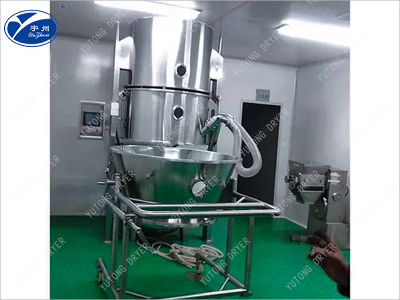 The fluidized bed air distribution plate is made into a special annular plate structure, with each plate forming a stacked form, allowing the airflow to pass through the gaps between the blades, forming a circulating high-speed airflow, thereby making the material move in a regular vortex like manner. The adhesive or coating liquid is sprayed into the regular flow material layer through the pneumatic nozzle installed on the side wall, thereby turning the powder into particles or obtaining a continuous and uniform film coating.