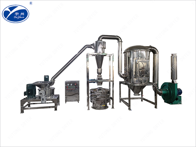 本機適應范圍廣,生產(chǎn)過程連續(xù)進行出料粒度可調(diào),如化學制品、食品、藥品、化妝品、染料、樹脂、殼物等多種物料的粉碎及分級。