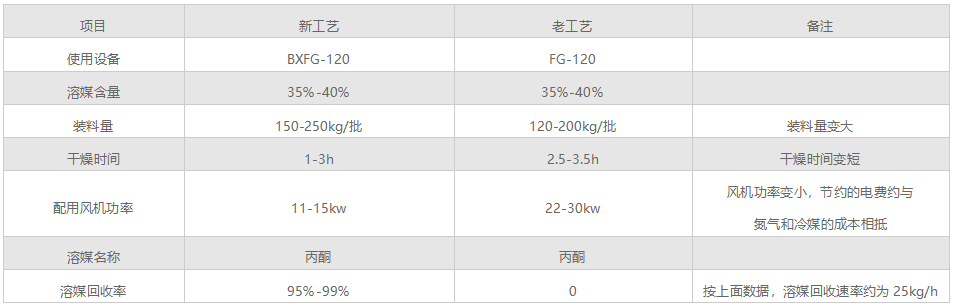 1、經閉路循環沸騰干燥機干燥之后含有溶媒的熱濕氣進入冷凝器,將氣體中的溶媒冷凝(溶媒回收率為95%以上),既可以回收溶媒又可以冷凝除濕干燥氣體。回收的溶媒可以再次循環使用,可以節約成本,同時不會造成尾氣排放對環境污染。熱濕氣體經過冷凝除濕,氣體內的濕度低(與普通沸騰干燥相比),干燥能力變強,更適應與對濕度環境影響的易吸潮物料。