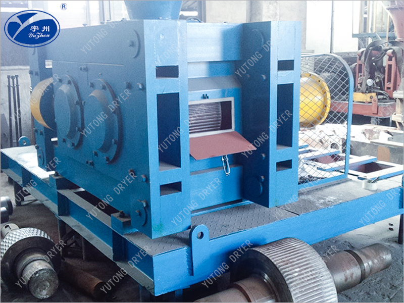 各種干粉物料從設備頂部加入,經脫氣、螺旋預壓進入兩個平等軋輥,軋輥相對旋轉,物料被強制送入兩輥之間,帶槽軋輥將物料咬入輥隙被強制壓縮,物料通過壓縮區后,物料的表面張力和重力使之自然脫出。脫出后的指條狀團塊進入碎粒機由旋轉刀排破碎,被破碎的物料進入整粒機通過滾動刀排使顆粒和部分粉狀物料進入旋振篩進行篩分。合格品通過輸送機被送入成品倉。粉狀篩下物料通過輸送機再次被送回原料倉進行二次輥壓,擠壓力的大小可根據造粒操作的需要由液壓油缸的壓力進行調節。 通過改變輥面開槽形式,可得到片狀、條狀、扁球狀物料。