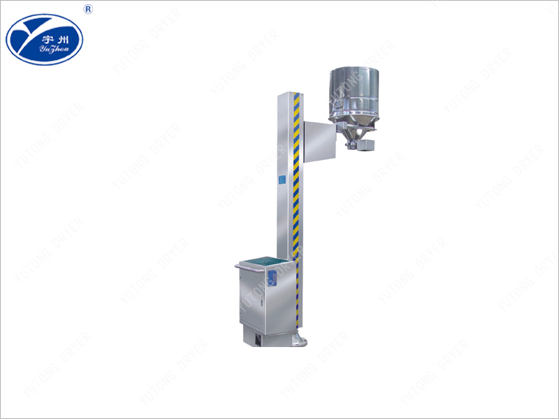 Машина состоит только из стойки, вращающегося шасси, вилочного погрузчика, гидравлической системы и системы управления. Во время работы бункер, заполненный материалом, толкается на вилку подъема, управляет подъемным стержнем, поднимает бункер на высоту подачи, вращающаяся стойка стыковается с устройством подачи, открывает клапан - бабочка разгрузки, материал переносится на следующее технологическое оборудование.